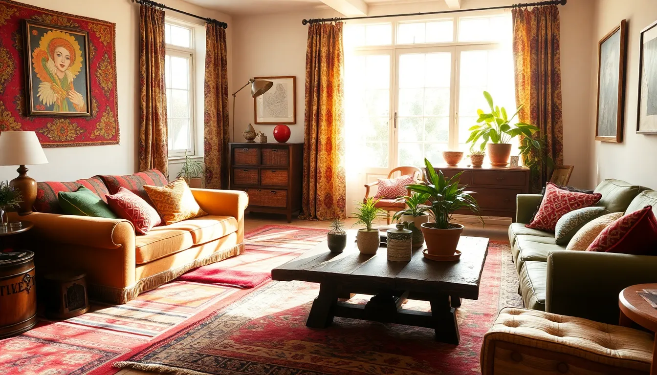 Layering textures forms the foundation of Bohemian design. Thick rugs and intricate tapestries add warmth underfoot. Colorful throw pillows bring comfort and visual interest. Fabrics with diverse patterns, like floral prints and geometrics, visually integrate different styles. Mixing materials such as wool, cotton, and silk enhances depth. Vintage textiles complement modern designs and vice versa, assuring an eclectic feel. Every layer contributes to the relaxed atmosphere, encouraging comfort and creativity.